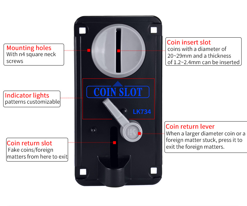 LK734 Coin acceptor Flip cover design panel can be customized with exclusive LOGO and company name