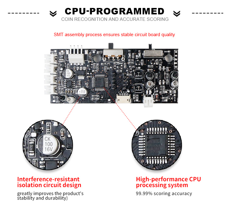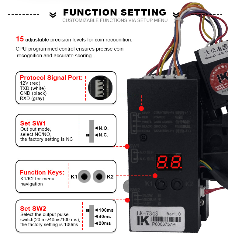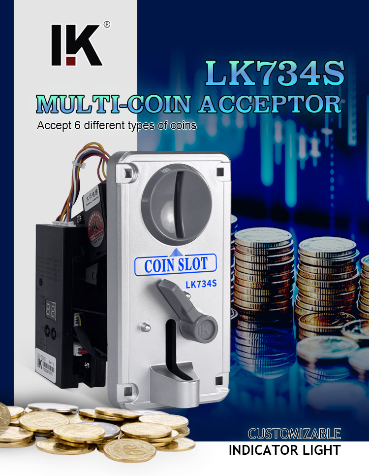 LK734S Multi Coin Acceptor, High-Precision Coin Selector Supporting 6 Coin Types, Pulse or Protocol Communication, 15-Level Accuracy Control