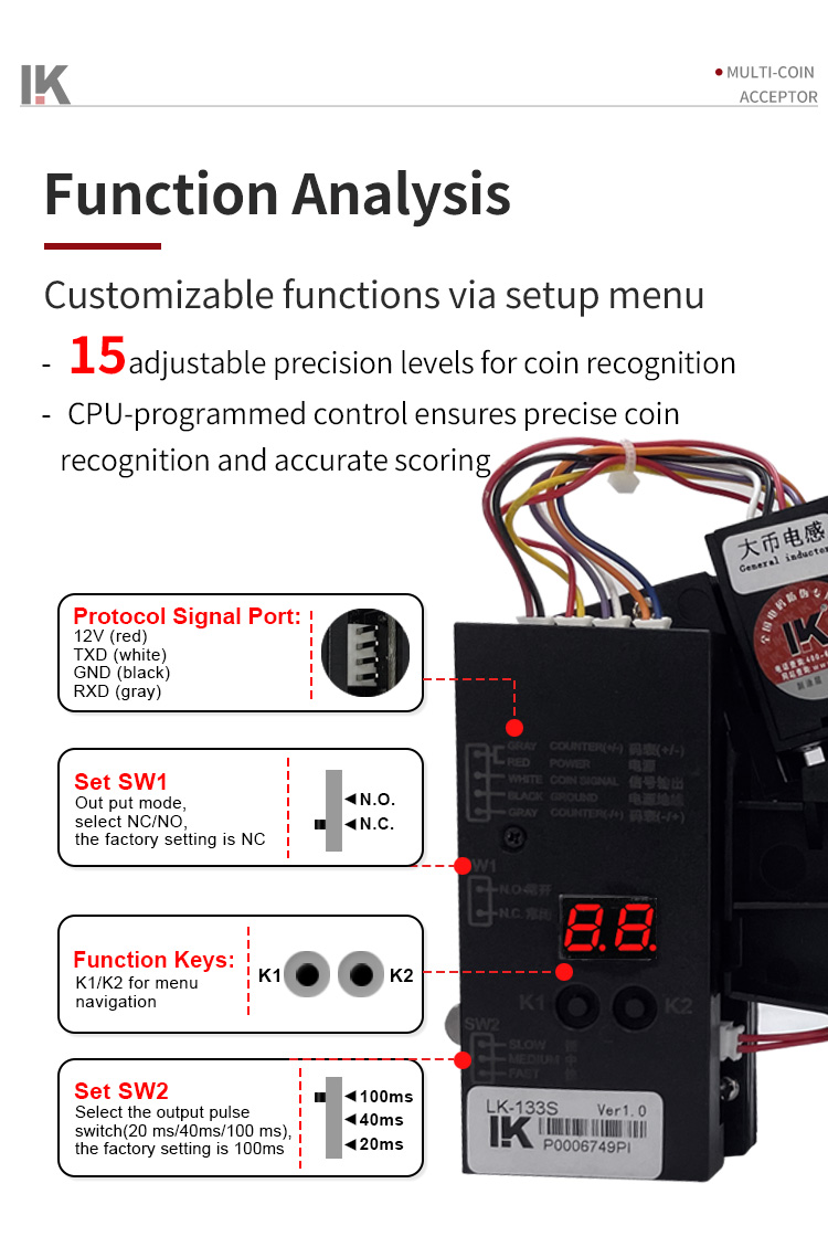 Ultra-Durable LK133S: Industrial-Grade Coin Acceptor for Arcades, 6-Coin Compatibility & 15 Precision Settings