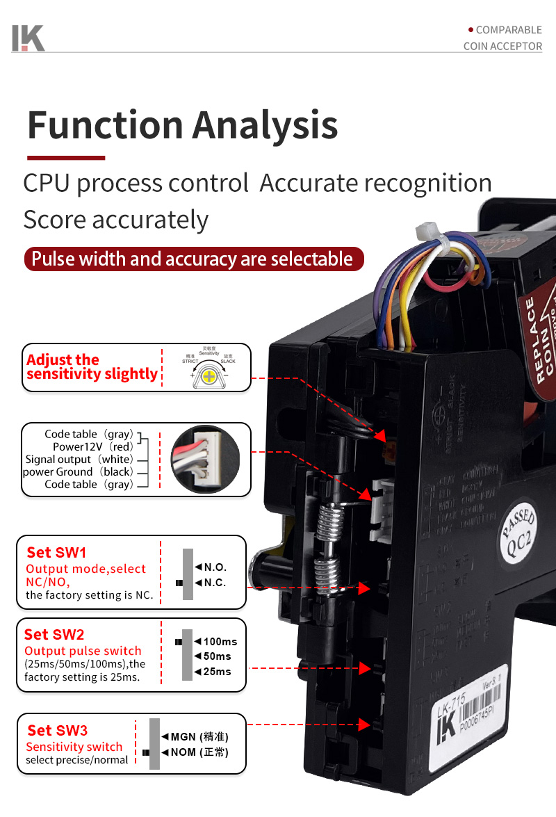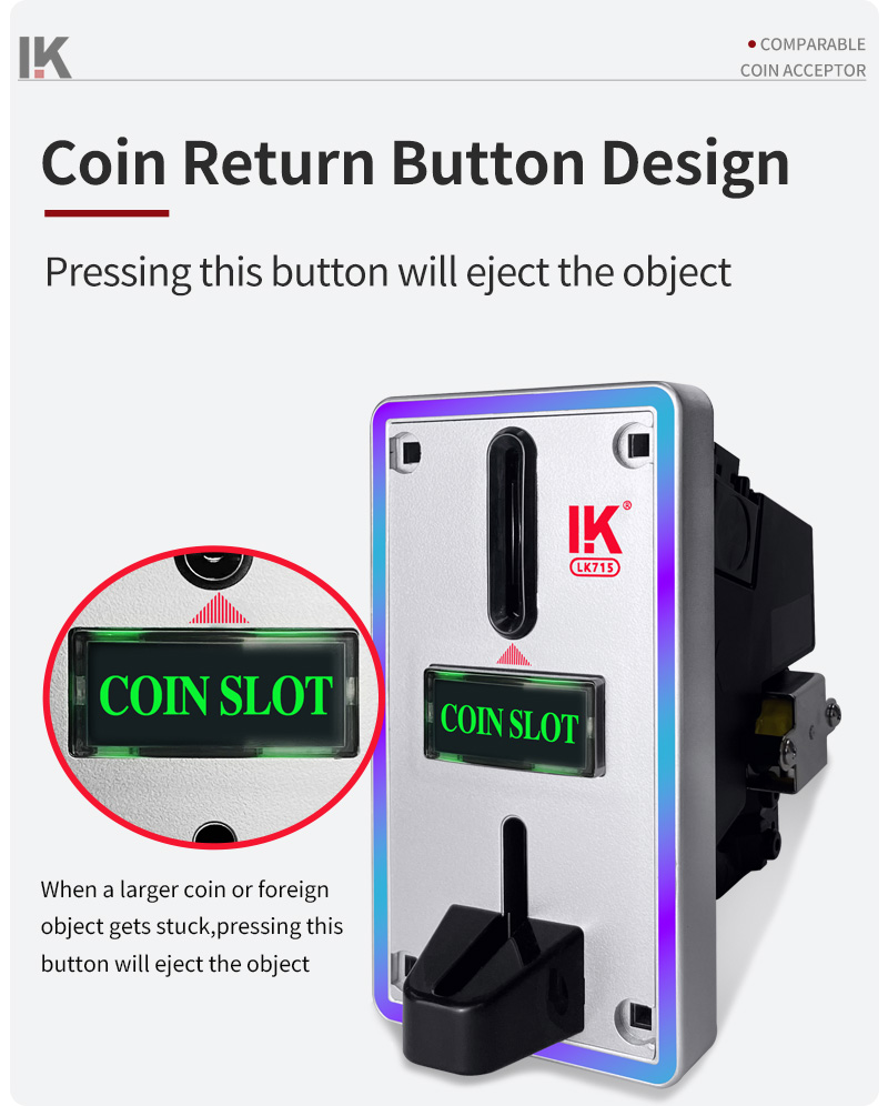LK715 Comparative Coin Acceptor for Arcade, Vending, and Game Machines, offering stable performance and accurate coin recognition