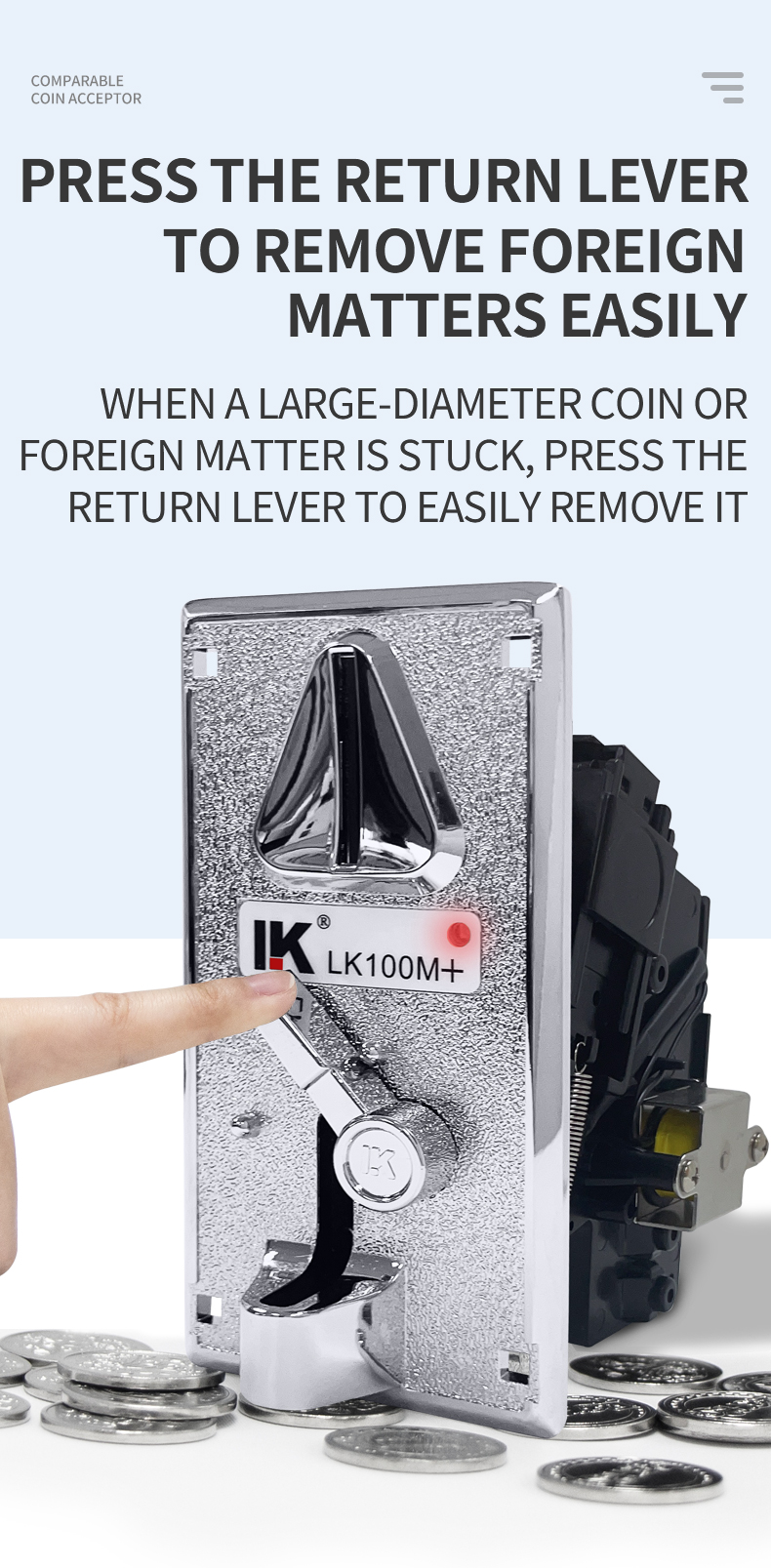 LK100M+ metal panel coin acceptor