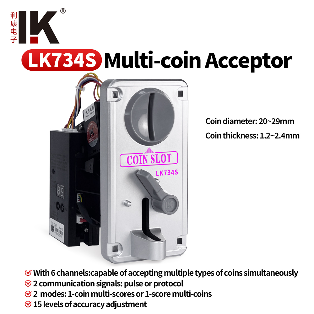 LK734S Multi Coin Acceptor, High-Precision Coin Selector Supporting 6 Coin Types, Pulse or Protocol Communication, 15-Level Accuracy Control